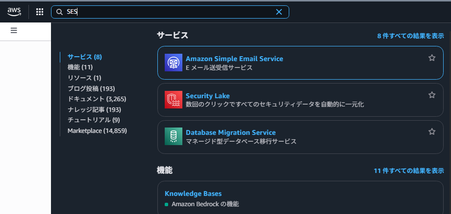 2. 検索候補に表示された 「Simple Email Service」 をクリックします。