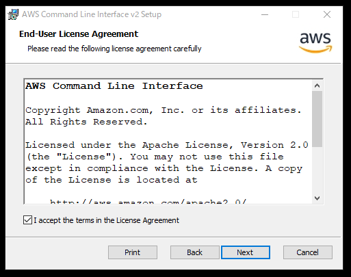 2. AWS CLI v2 のインストーラーのライセンス確認画面