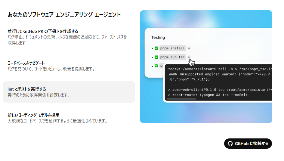 ただし、このCodexを使うにはGitHubとの接続が必須です。これは、Codexが「実在するコードベース(=GitHubリポジトリ)」を前提に動作するよう設計されているためです。
