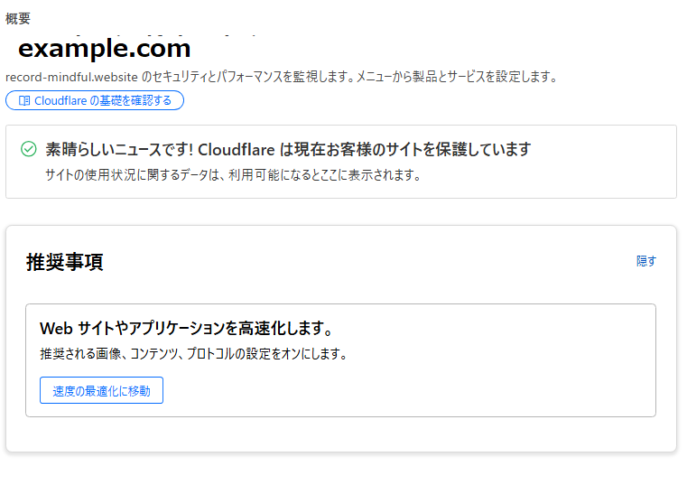• ✅ Cloudflareのネームサーバーが正しく設定されると、このメッセージは表示されなくなります。