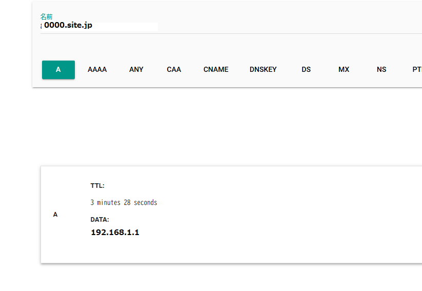 下記の画像はAレコードを追加する前です。