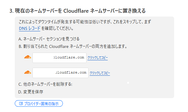 3. Cloudflareのネームサーバーを入力