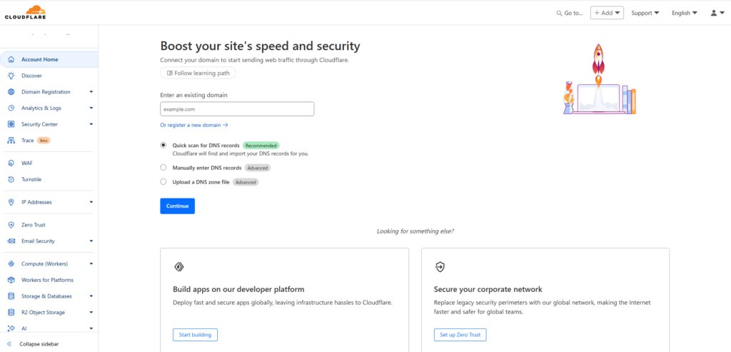 1. Cloudflare にアクセス
