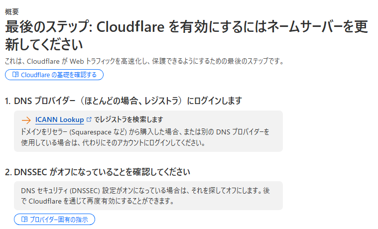 • これは、Cloudflareがネームサーバーの変更をまだ確認できていない場合に表示されるメッセージです。