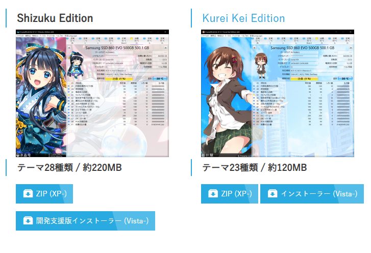 CrystalDiskInfoのダウンロードオプションにはいくつかの違いがあり、主に使用するシステムやインストール方法の好みに応じて選択します。ダウンロードページ