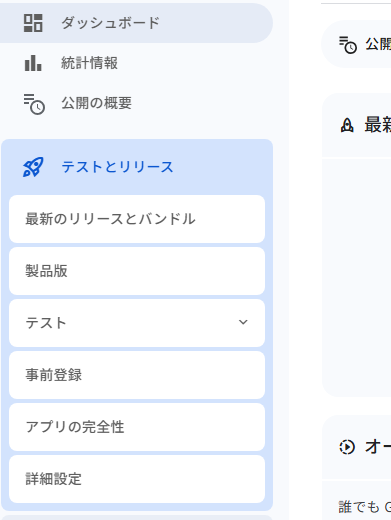 - 左のメニューから、テストとリリース → アプリの完全性(App integrity)を選択。