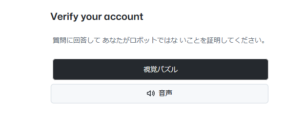 「視覚パズル」または「音声」による認証を選び、画面の指示に従って操作します。