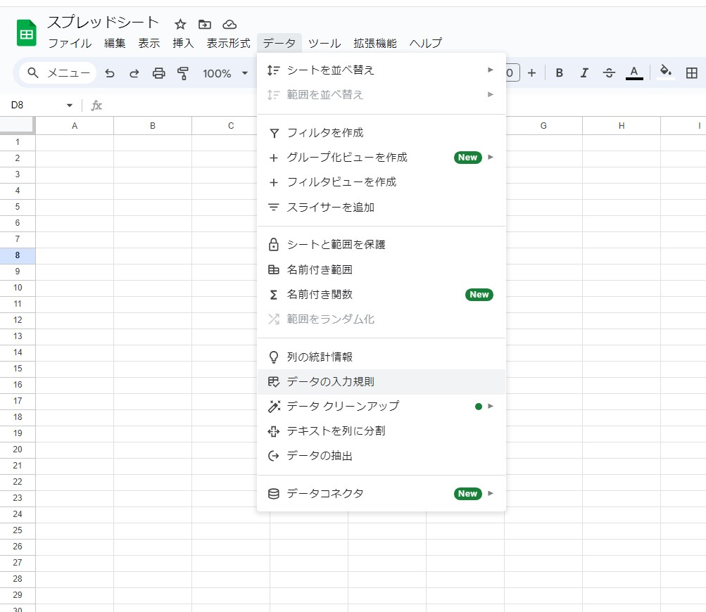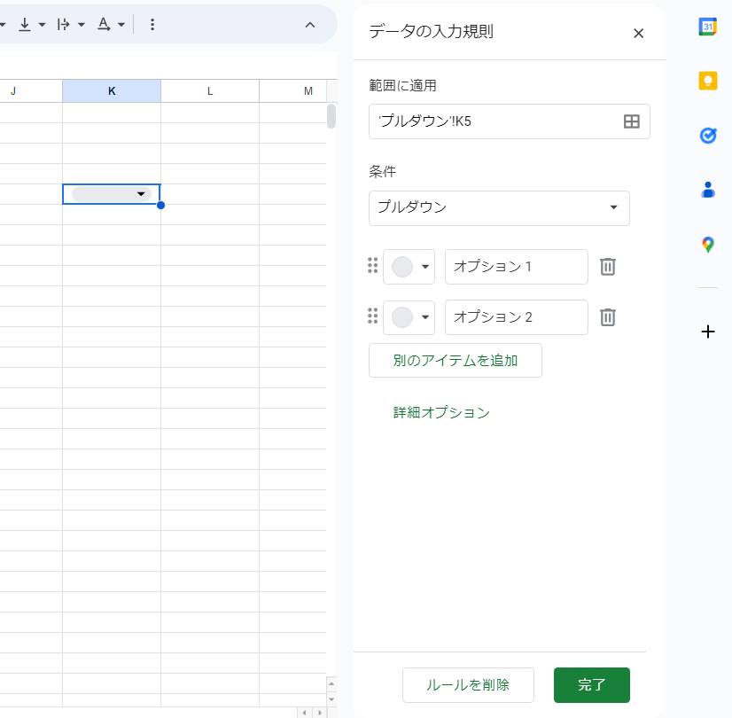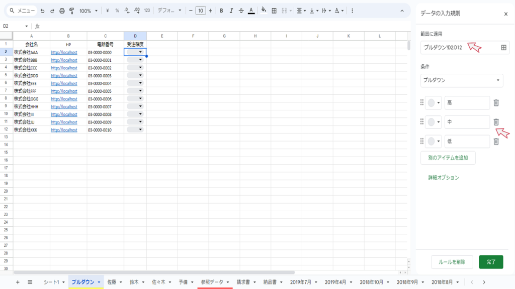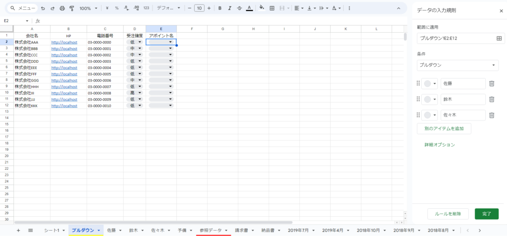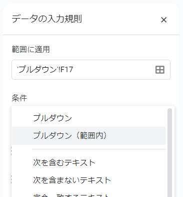 スプレッドシート、プルダウンを作成する
