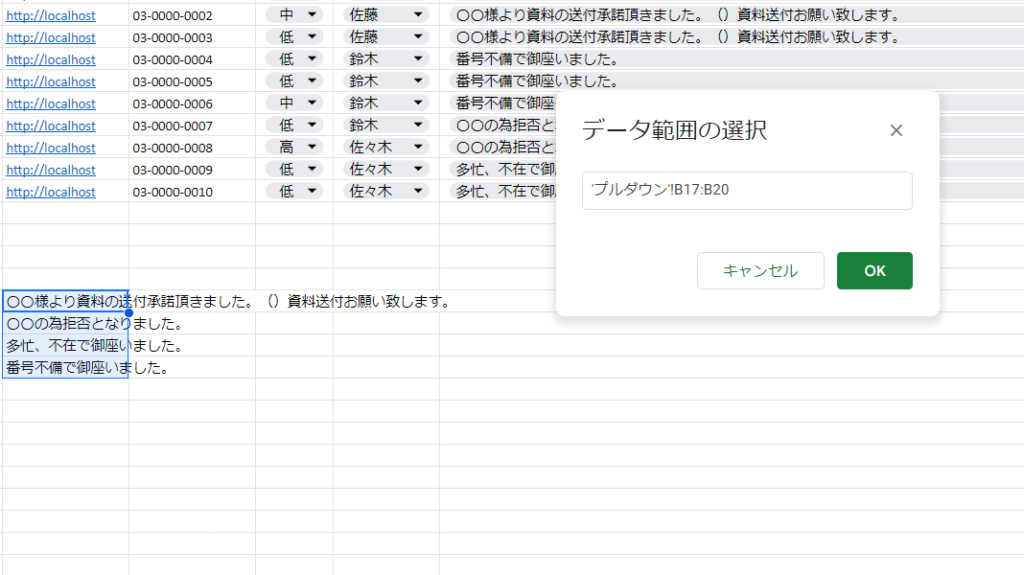 • 必要に応じてシート内の値を範囲として指定することで、リストを効率的に作成できます。