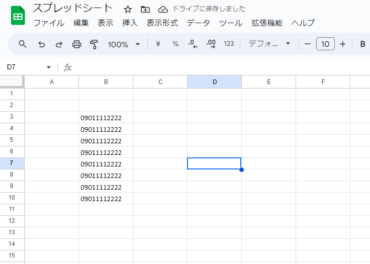 2. 数字の先頭にシングルクォーテーション(例:’0123456789)を入力します。