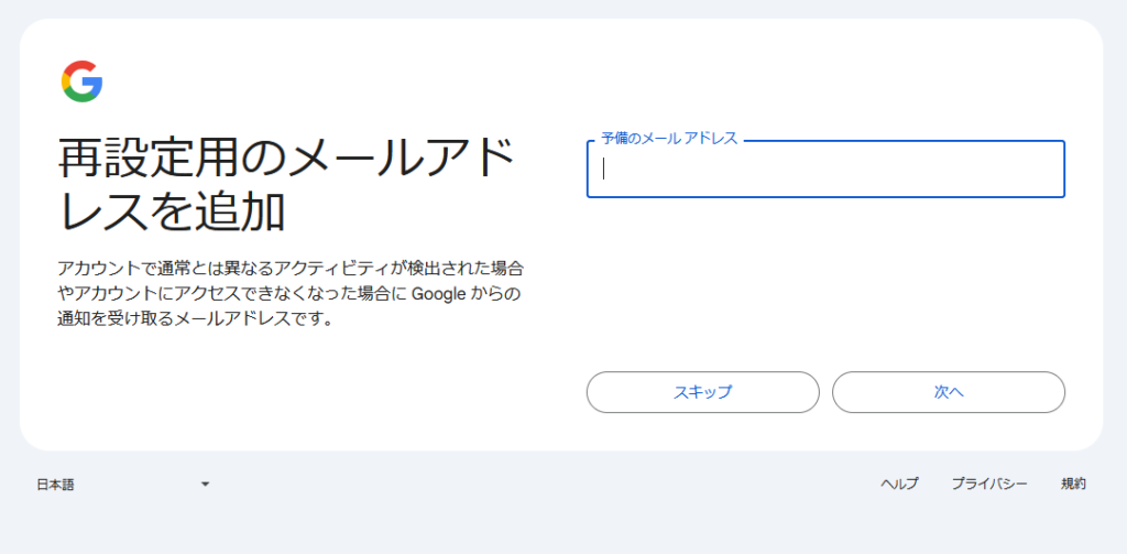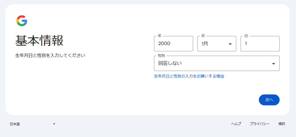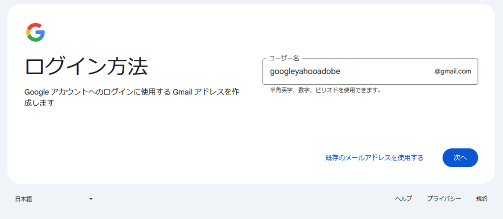Googleアカウントの作成