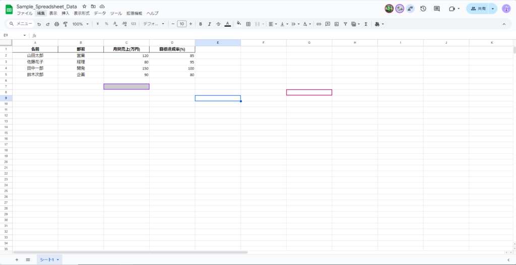 エクセルでもMicrosoft 365のクラウド機能(OneDriveやSharePoint)を使えば、ある程度の共同編集が可能です。しかし、Googleスプレッドシートは設計段階から複数ユーザーによる同時編集を想定しており、複数人が同じシートを開いていても編集箇所が衝突しにくい仕組みになっています。誰がどこのセルを操作しているかが視覚的にわかりやすく、コメント機能も充実しているため、複数人でリアルタイムに議論しながらデータを入力・修正することができます。