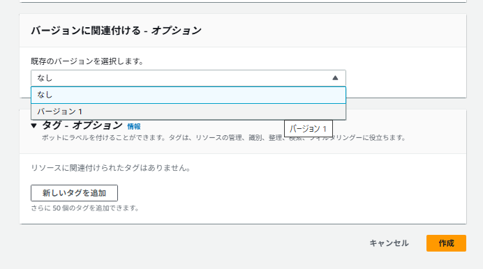 ※ドラフト状態では本番運用に使えないため、まず「バージョン1」などを作成する必要があります。