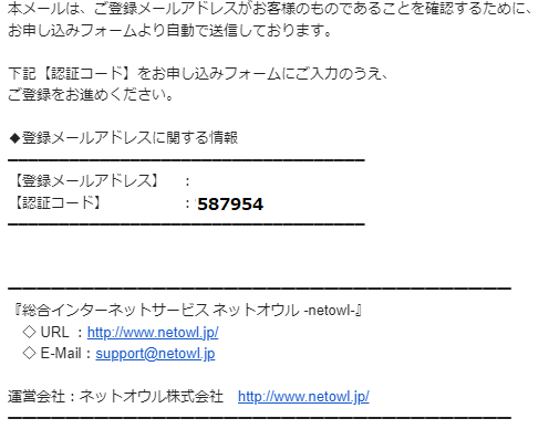 • メール内の「認証コード」を確認し、申し込みフォームに入力する。