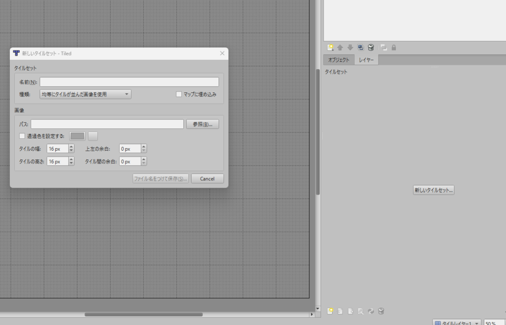 新規でタイルレイヤーを追加(オブジェクトレイヤー)