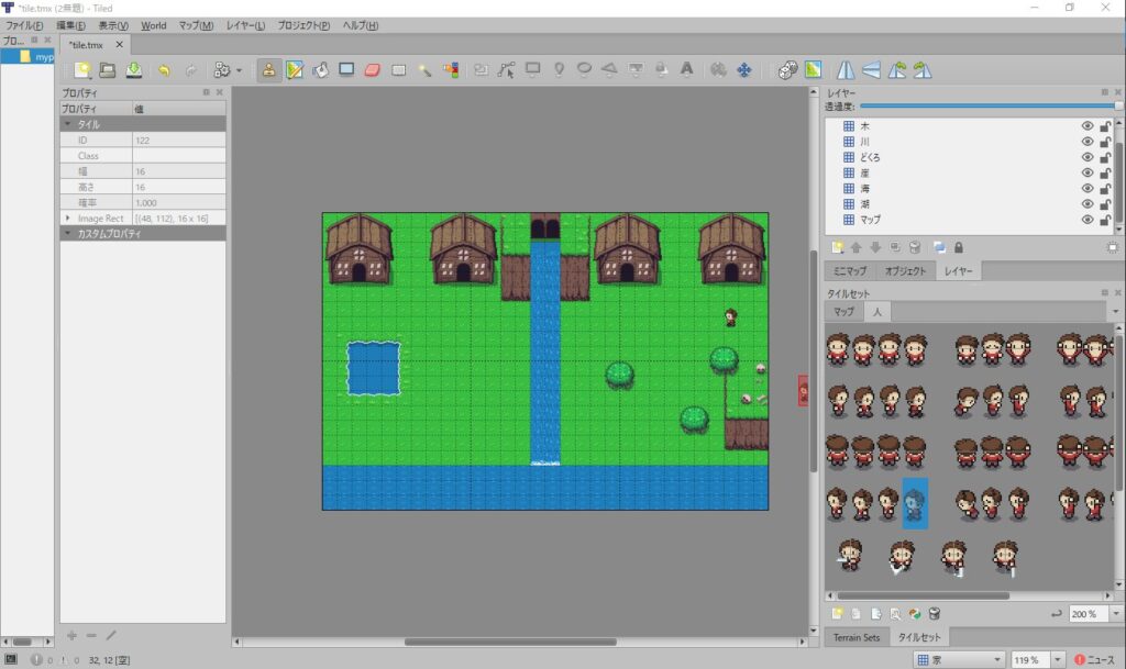 各タイルのサイズもピクセル単位で定義されます。一般的なタイルサイズには、16×16ピクセル、32×32ピクセル、64×64ピクセルなどがありますが、プロジェクトのニーズに合わせて任意のサイズを設定することが可能です。