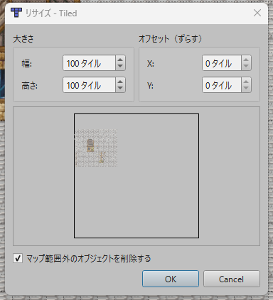 マップの大きさは、タイルの数で定義されます。マップ作成時に、マップの幅(タイル数)と高さ(タイル数)を指定することができます。これにより、マップの全体的な広がりとゲーム内でのスクロールの必要性が決まります。
