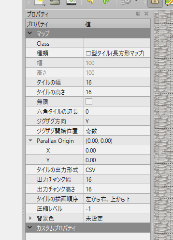 左側にプロパティが出現するので、タイル幅、タイルの高さを調整できます。他のプロパティも変更できるようになります。