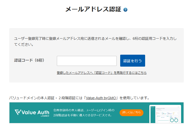 • 受信した認証コードを入力し、「認証を行う」をクリック。