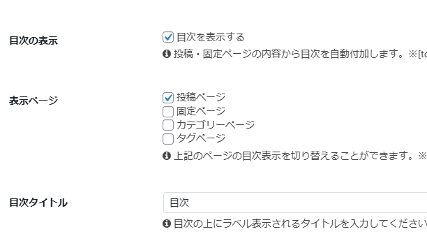 このままでも目次は表示されていますが、サイドバーなど別の場所に表示させたい場合は、ショートコードやウィジェットを使用して配置することができます。