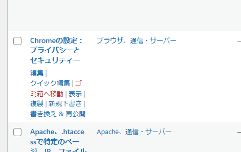 - 投稿一覧画面またはページ一覧画面を開きます。