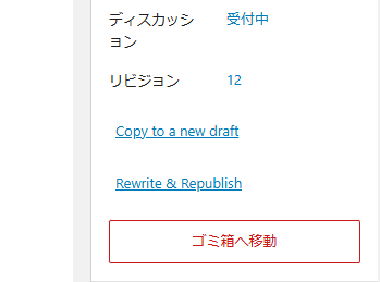 - 編集画面で、「キャンセル」や「ゴミ箱に移動」の上部に表示される「Copy to a new draft」をクリックします。