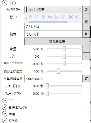 ボイスアイテムの場合、アイテム部分は以下の内容を編集できます。