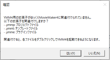 拡張子の関連付けの確認があるので、「はい」をクリック。