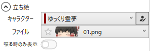 - 「キャラクター」欄 で「ゆっくり霊夢」などを選ぶ。