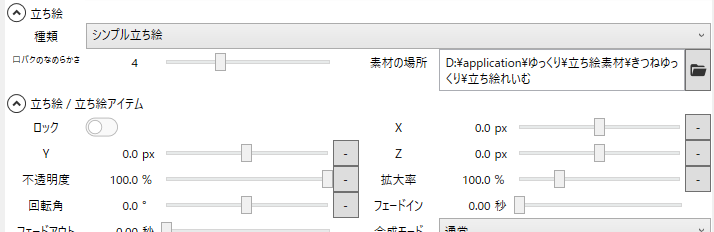 - 立ち絵の種類・素材の場所を設定