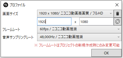- 次に、動画の解像度(1920×1080など)とフレームレート(60fps、30fpsなど)を設定します。特にこだわりがなければ、デフォルトのまま進めても問題ありません。